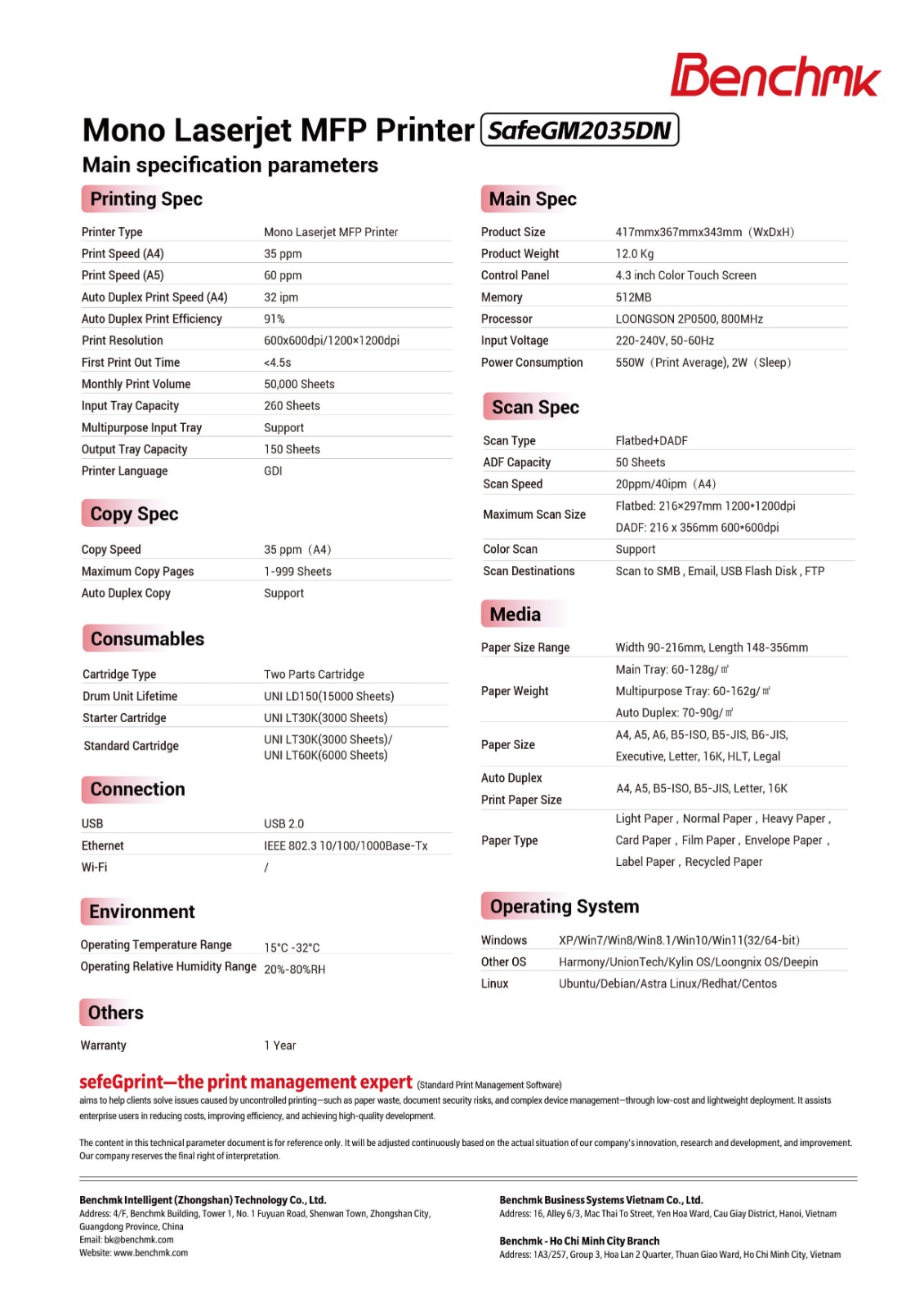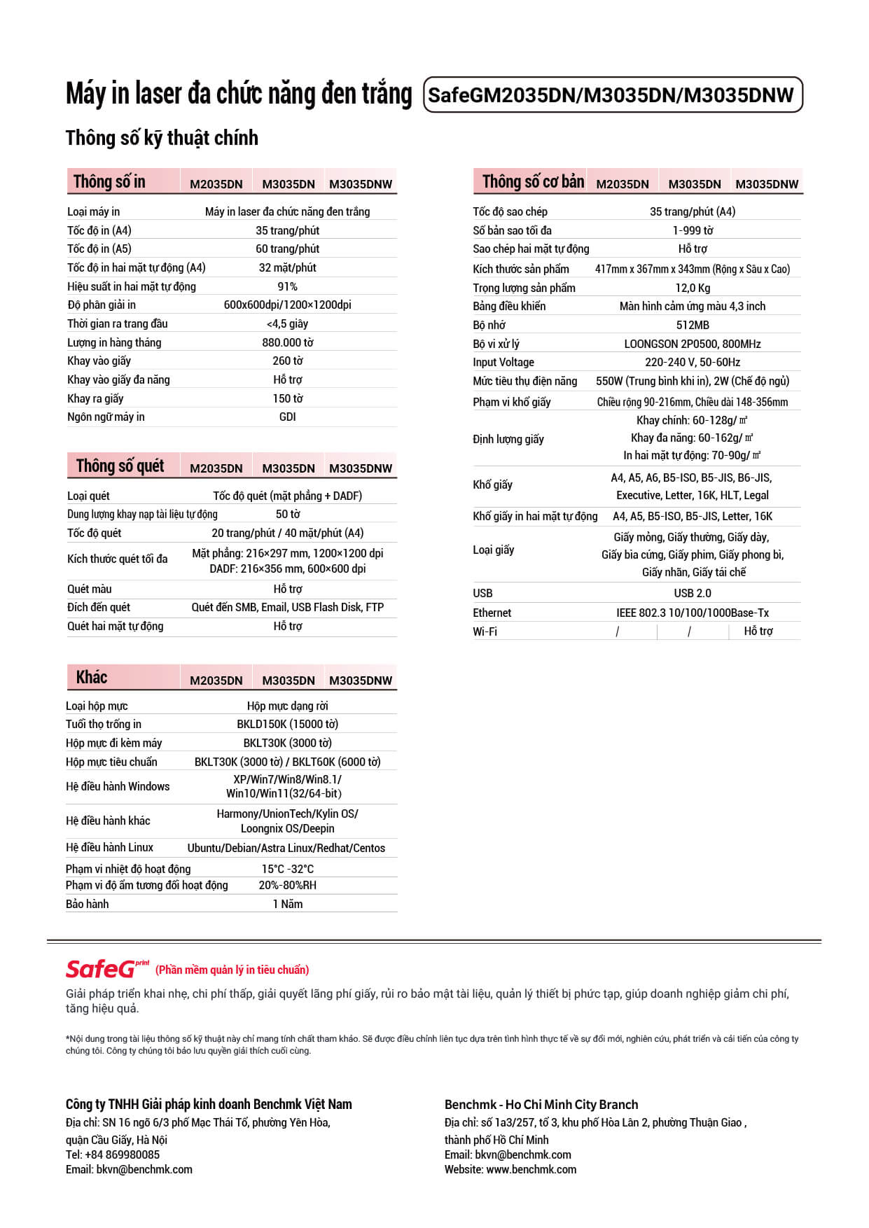 SafeGM2035DN Dòng sản phẩm safeGprint